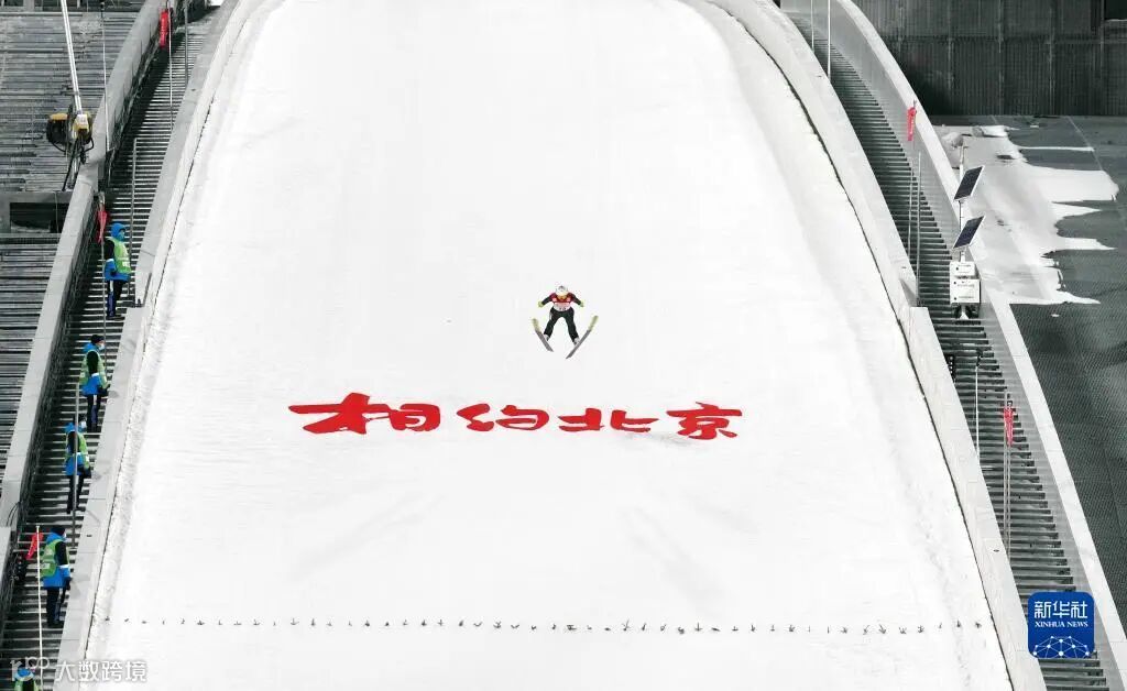 ▲ 2021年12月5日,一名选手在“相约北京”系列测试赛2021-2022国际雪联跳台滑雪洲际杯女子个人标准台第二站比赛中。新华社记者 牟宇 摄