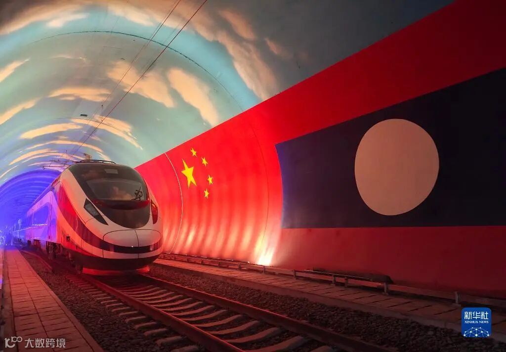 ▲ 2021年10月15日,“澜沧号”动车组通过中老友谊隧道内的两国边界。新华社发(曹安宁摄)