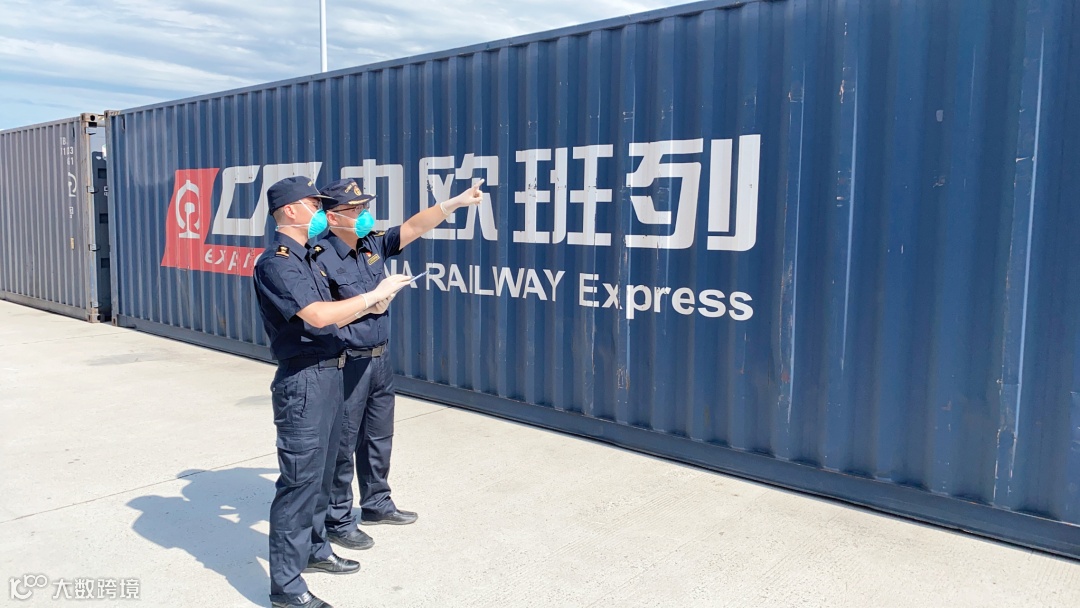 海关关员对中欧班列出口货物开展实地监管,保障班列高效开行。图/陈阳