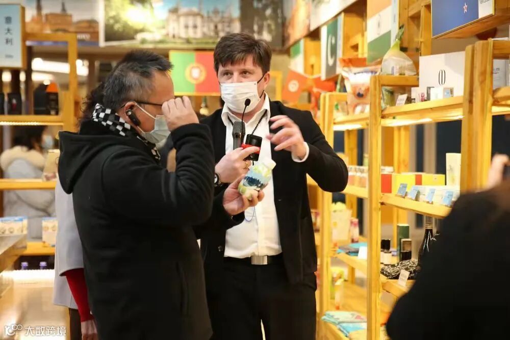 ▲ 2022年2月底,格鲁吉亚“一带一路”商务馆创始人贝卡介绍海外产品。图片由受访者提供