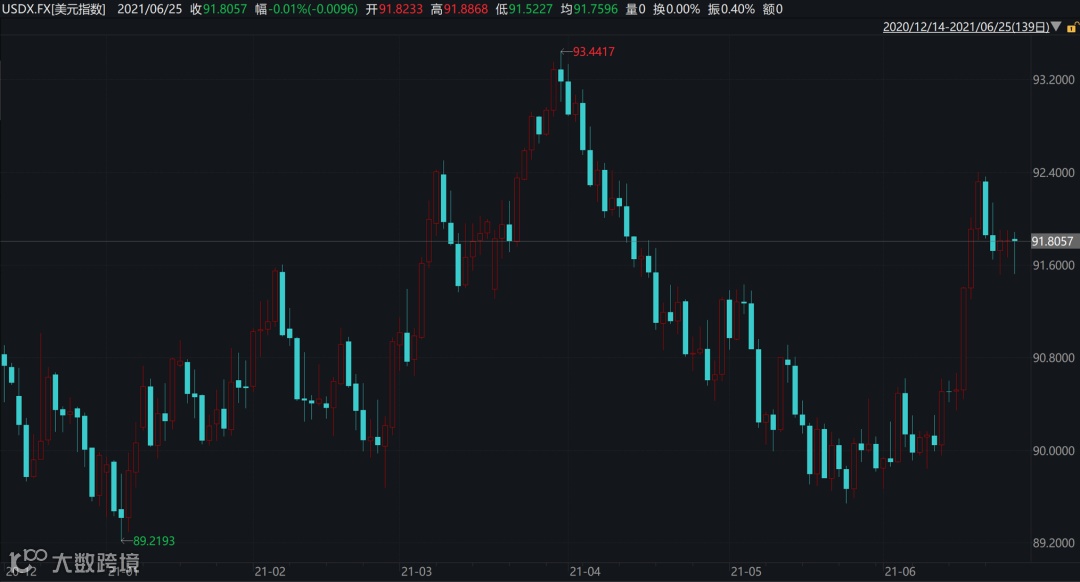 美国经济数据喜忧参半,6月Markit制造业PMI创新高,但5月新屋销售意外创逾一年新低,美国5月核心PCE物价指数同比增3.4%,创近三十年最快同比增速。指PCE物价指数公布后,美国基准10年期国债收益率上行冲破1.5%,至1.528%;30年期美债收益率从四个月低位反弹,升至2.151%。欧洲方面,英国央行保持QE不变,警告不能因通胀高涨而过快收紧货币,称经济复苏仍需宽松支持,英国为首的欧洲国家国债收益率齐降。欧、美国债收益率利差加大,将对美元有一定支撑作用。