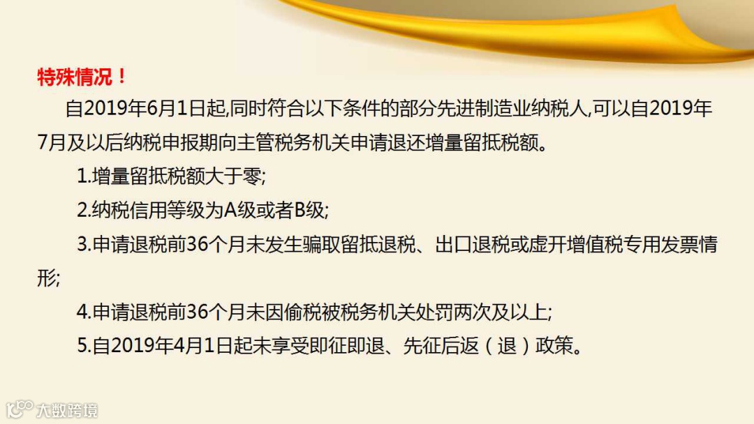 通过我们上面的介绍,相信网友们对“增量留抵概念”弄懂了,“符合条件”也清楚了,“计算方法”也明白了,那么,还有没有什么特殊规定呢?