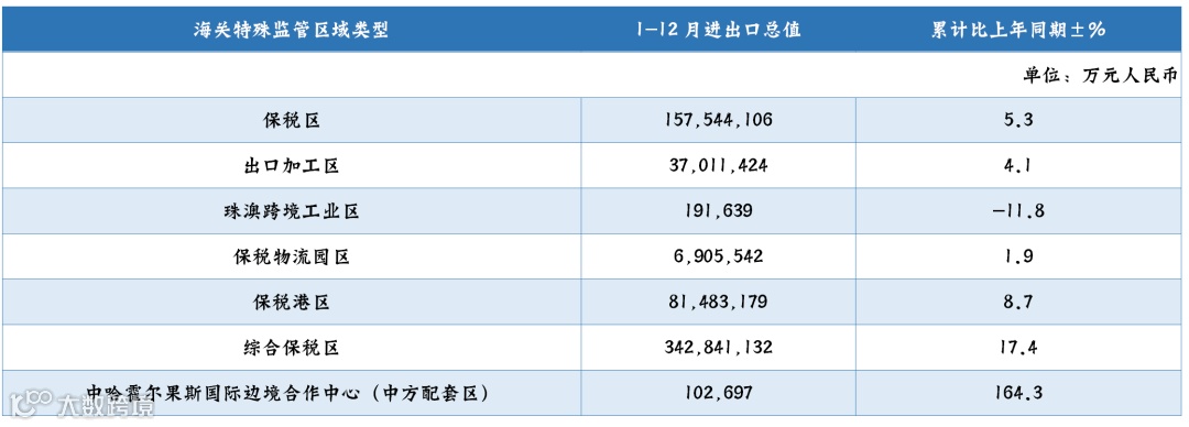 海关总署数据显示,2020年全年,全国海关特殊监管区域共实现进出口总值