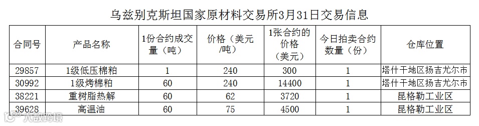 2021年3月31日乌交所挂单信息