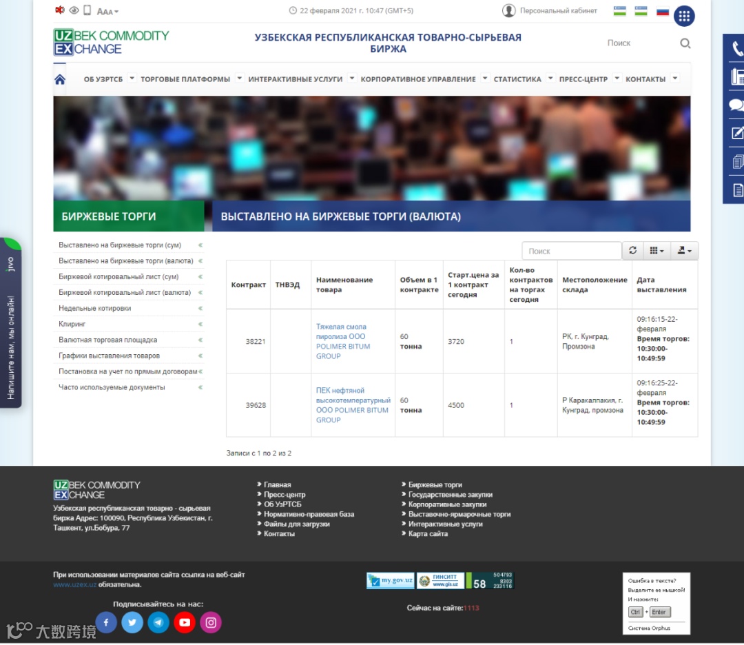 2021年2月22日乌交所挂单信息