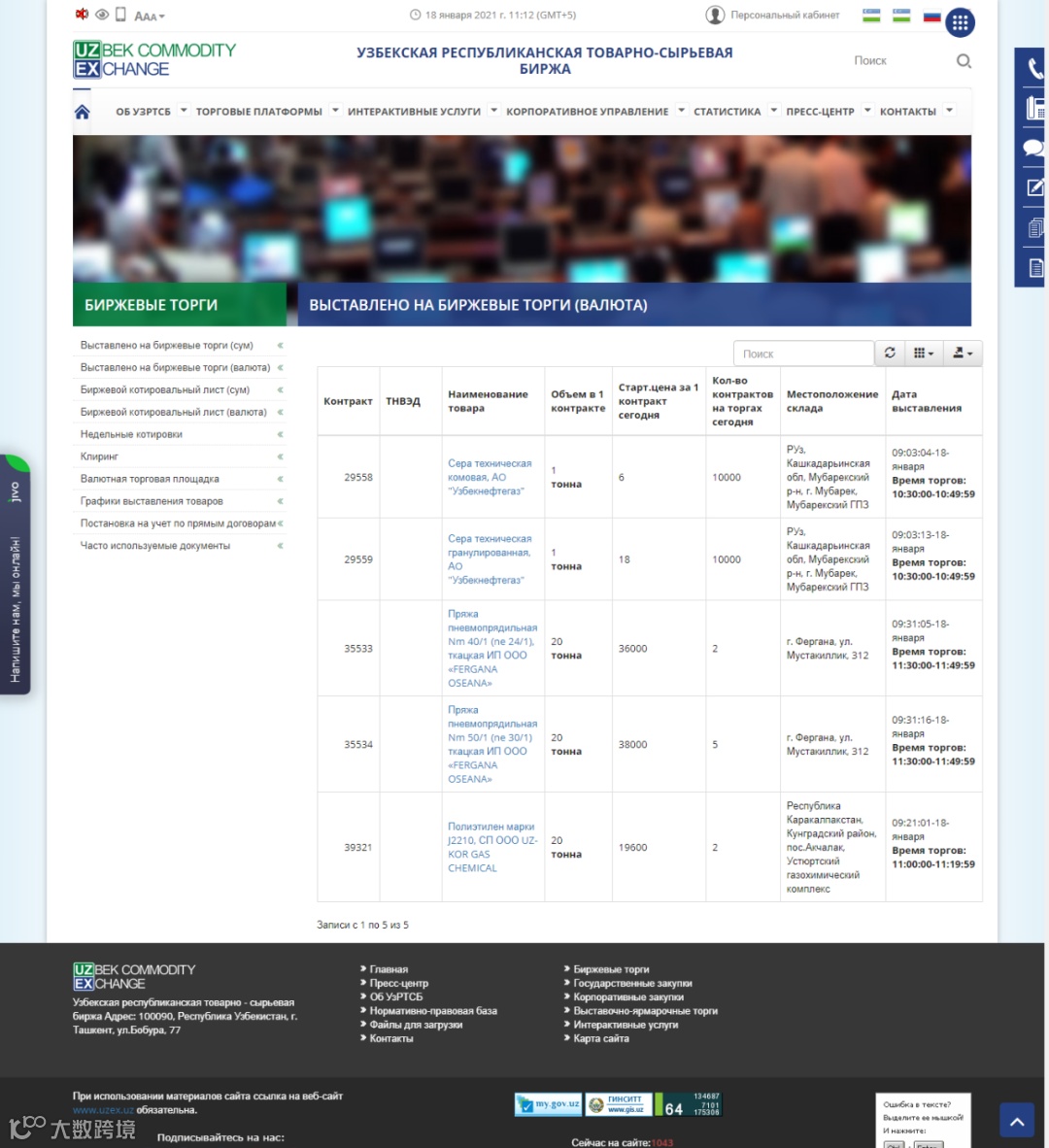 2021年1月18日乌交所挂单信息