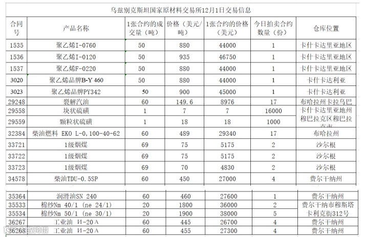 2020年12月1日乌交所挂单信息