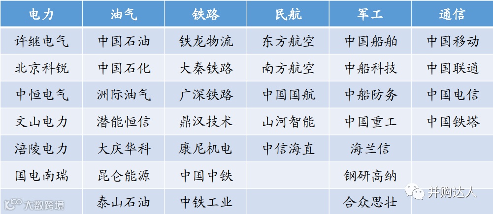 3、七大垄断领域,尤其需要关注电力、油气、铁路领域的混改进展。