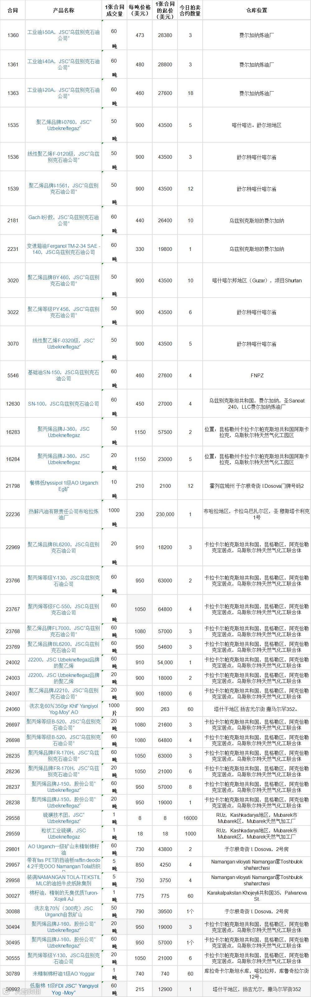 3月2日乌交所上新物资