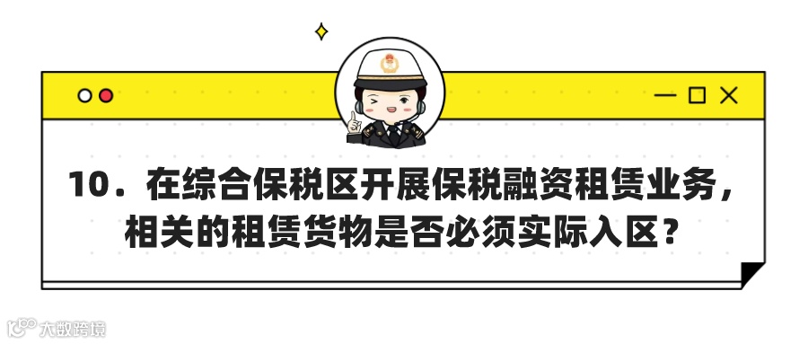 即对注册在综合保税区内的融资租赁企业进出口飞机、船舶和海洋工程结构物等大型设备涉及跨关区的,在确保有效监管和执行现行相关税收政策的前提下,按物流实际需要,实行海关异地委托监管,相关货物无需实际入区。