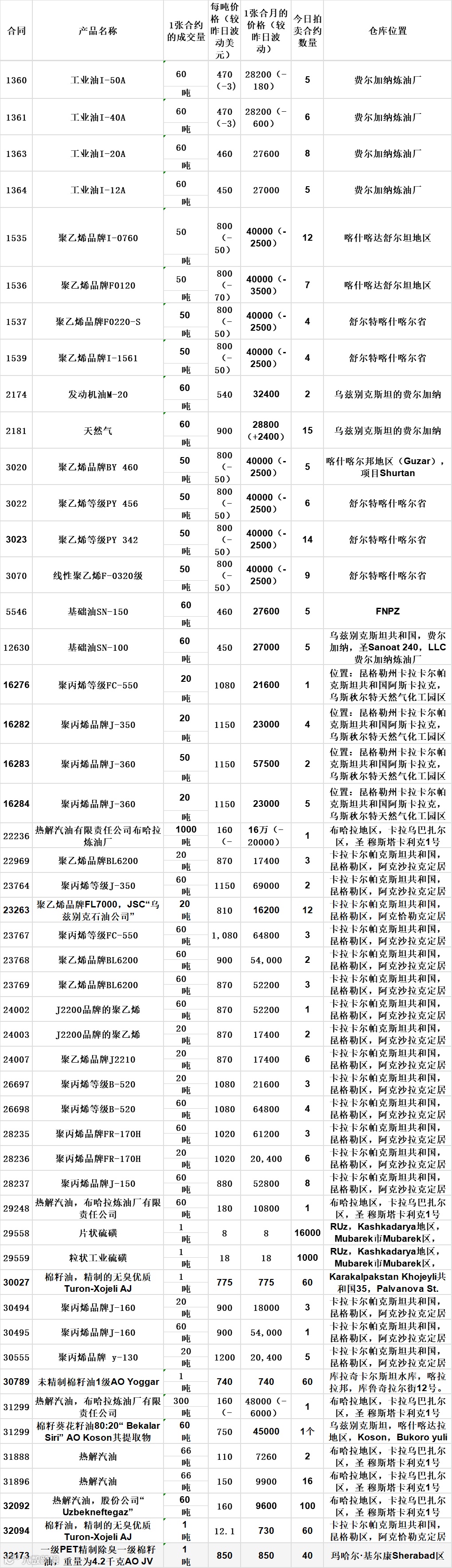 4月9日乌交所上新物资