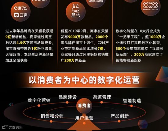 过去半年,品牌仅在天猫官方旗舰店就总计收获超9亿新增粉丝。商家通过淘宝触达超4.5亿下沉市场消费者。淘宝直播带来近1亿粉丝增量。商家通过天猫超市生态、本地生活、盒马鲜生等线下多端场景,为结构性新增消费者提供服务。