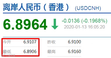 1月13日,在岸、离岸人民币一鼓作气高歌猛进,一度双双升破6.9!