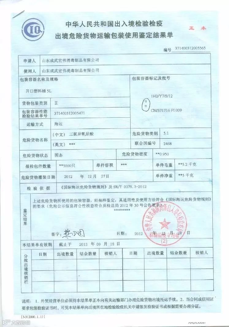 2、海事申报:需提供两证一书。申报后海事出具《危险货物适运申报单》。