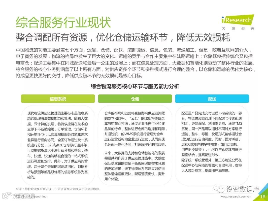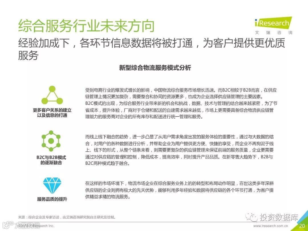 《报告》深入分析了目前中国的物流服务行业现状,并结合对物流服务各主要类别的分析,解读了细分市场的现状、痛点及未来趋势,并基于研究结论对整体物流服务行业的未来趋势做出预测。