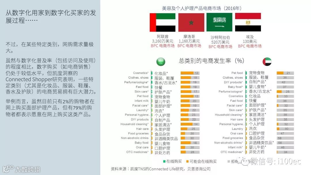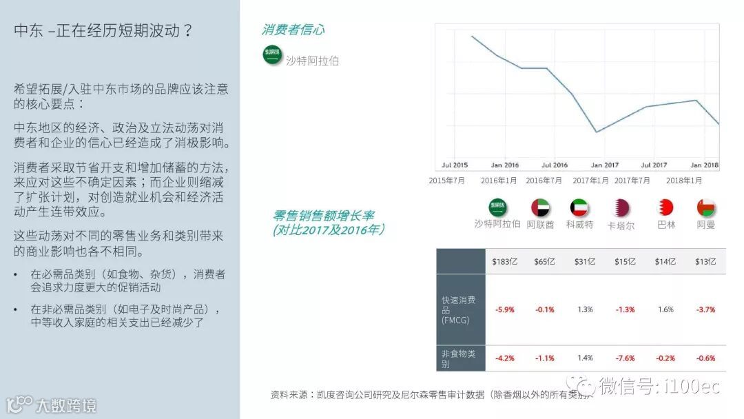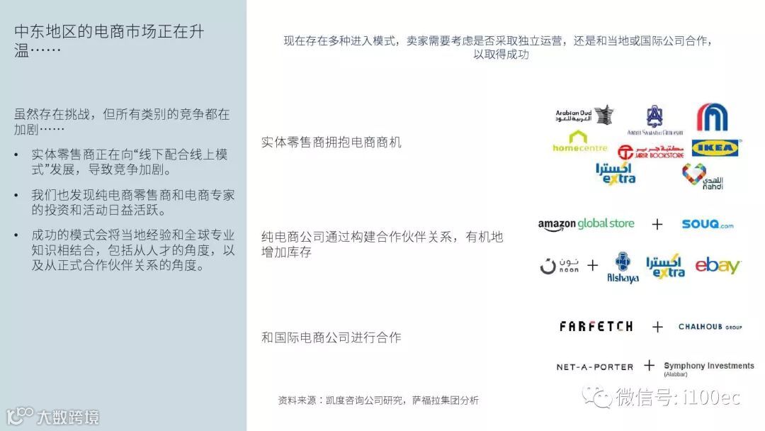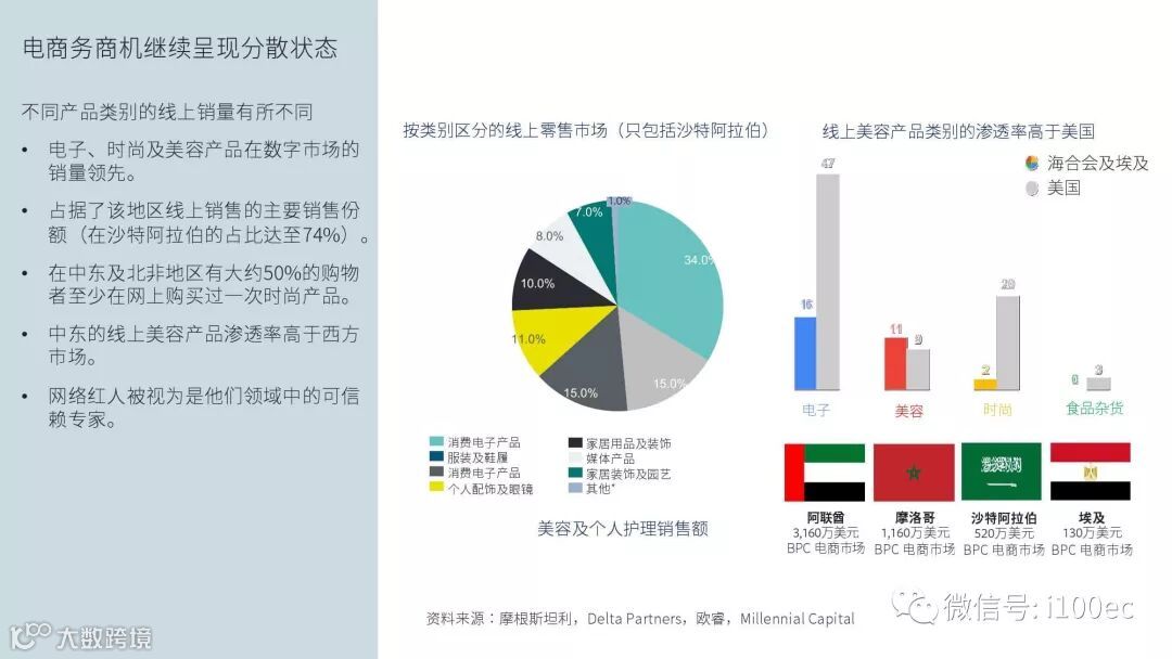 埃及、科威特、沙特阿拉伯、阿曼、巴林等市场现已转向多渠道的零售业务,部分线下零售商开始经营网店,纯电商及专业零售商也开始崭露头角。