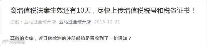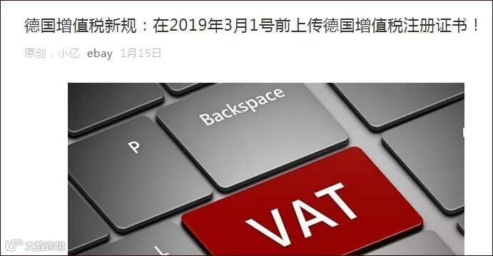 2019年1月1日德国增值税法规开始生效,亚马逊、eBay、Wish三大电商平台正不断地紧急催促卖家完善资料。