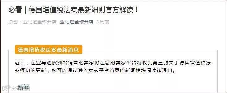 1.亚马逊全球开店公众号发布三篇文章,提醒卖家注意上传德国税务证书的重要性(如下图):