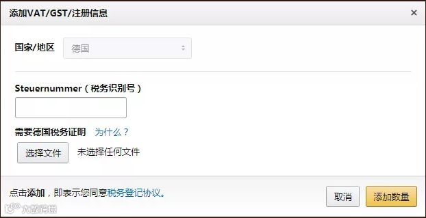 此前没有注册VAT税号的卖家,需要在平台后方一起上传德国VAT税号、德国税务证书和德国税号;注册并上传过VAT号的卖家,只需在后台添加德国税务证书和德国税号。