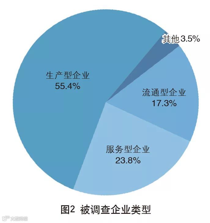 在历年调查中,生产型企业占比基本保持稳定,本次被调查中,生产型企业仍然最多,比例为55.4%;服务型企业和流通型企业占比排序与2017年相同,占比分别为23.8%和17.3%(见图2)。