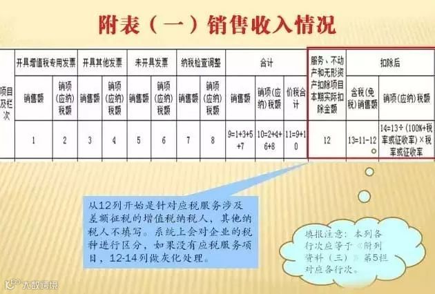 部分栏次对纯货物劳务类纳税人开放;部分栏次对纯服务、不动产、无形资产类纳税人开放;兼营纳税人相关行次都会放开。第11、12列的数据与附表三差额征税会勾稽。差额征税启用白名单管理,如果没有向主管税务所报送过,将无法填写差额征税栏次。