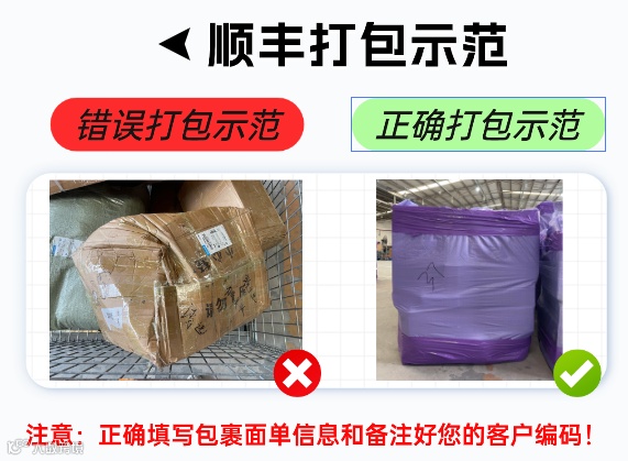正确包装包裹(货物必须用编织袋或纸箱打包好(如没有包装好直接给散装的产品不收))