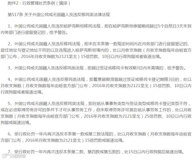 哈萨克斯坦行政管理处罚条例第517条详见下图附件2: