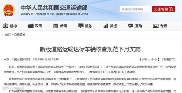 导读:新版运输达标车辆核查规范将于2月1日实施