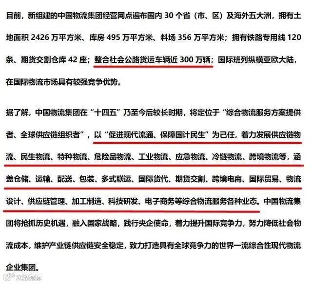 通过官方报道,以下内容与公路货运行业息息相关:中国物流集团将整合社会公路货运车辆近300万辆。将着力发展供应链物流、民生物流、特种物流、危险品物流、工业物流、应急物流、冷链物流、跨境物流等。