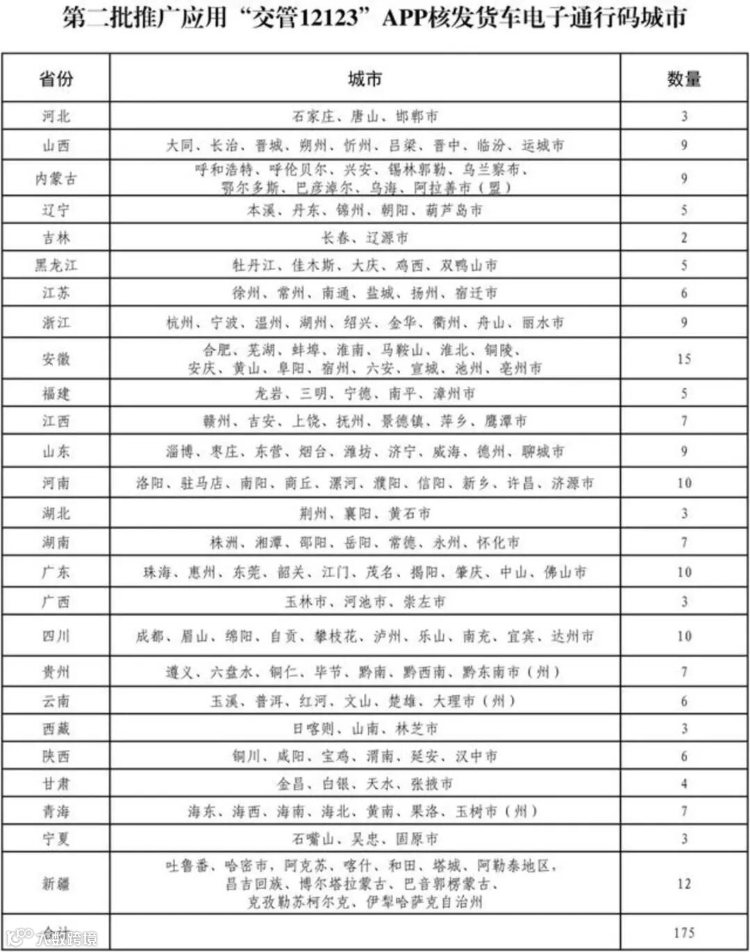 据最新消息,自2021年11月1日起,石家庄、杭州、成都等175个城市第二批推行网上核发货车电子通行码。