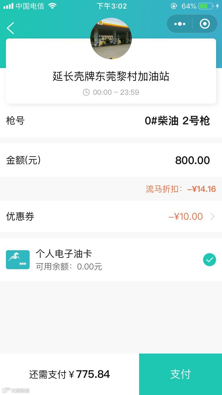 前往油站,加油后支付油费时,系统自动选择优惠券