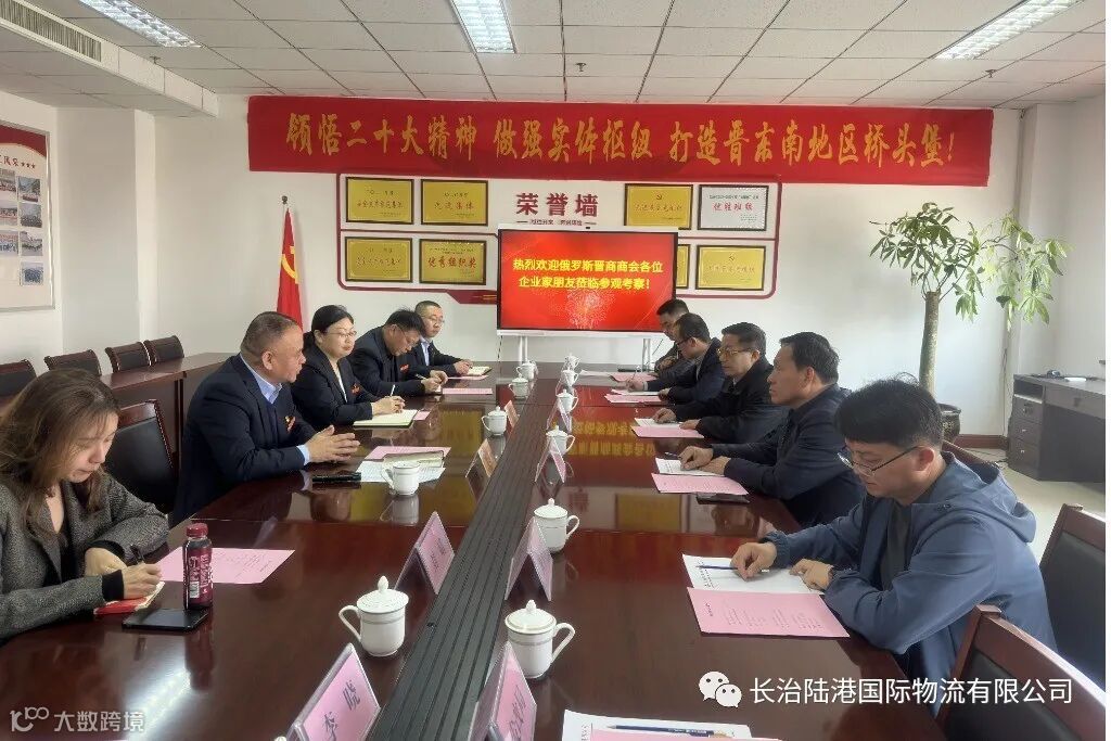 3月28日,俄罗斯晋商总会会长高先中,商会副会长马中志、司鑫龙一行到长治陆港园区考察并召开座谈会,交流国际贸易业务开展经验,共话合作发展大计。长子县政府副县长张树军参加会议并讲话,县发改、商务、招商等单位领导陪同。