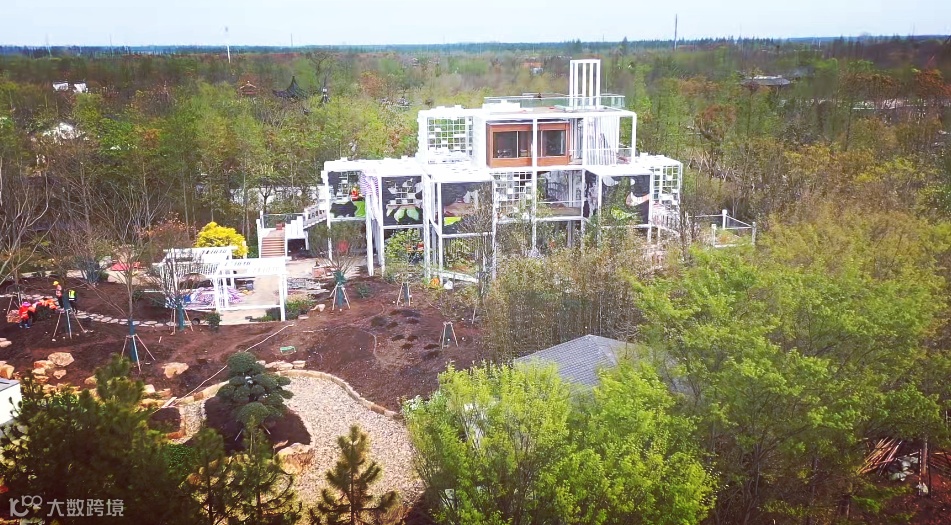 花语都市(立体展架区)是展园制高点,登顶可以俯瞰整座上海园全貌。展区设置倒置花园、特色花窗和多组花艺场景,其中倒置花园的布景手法为全国首创。