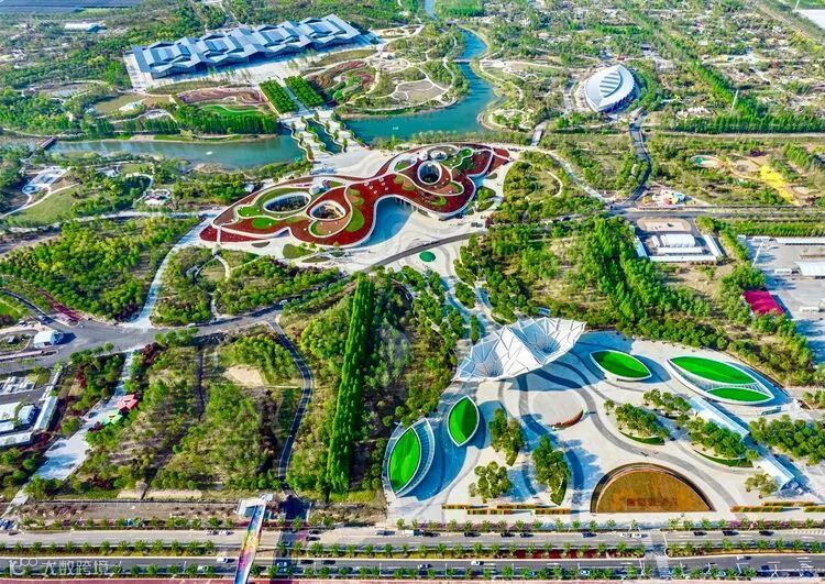 逐梦繁花(特色花境区)是贯穿南北的大型花境,利用几十种新优花卉的花色展现色彩渐变过程,同时运用大面积花境与小品、景石搭配,构成了一幅优美的自然画面。
