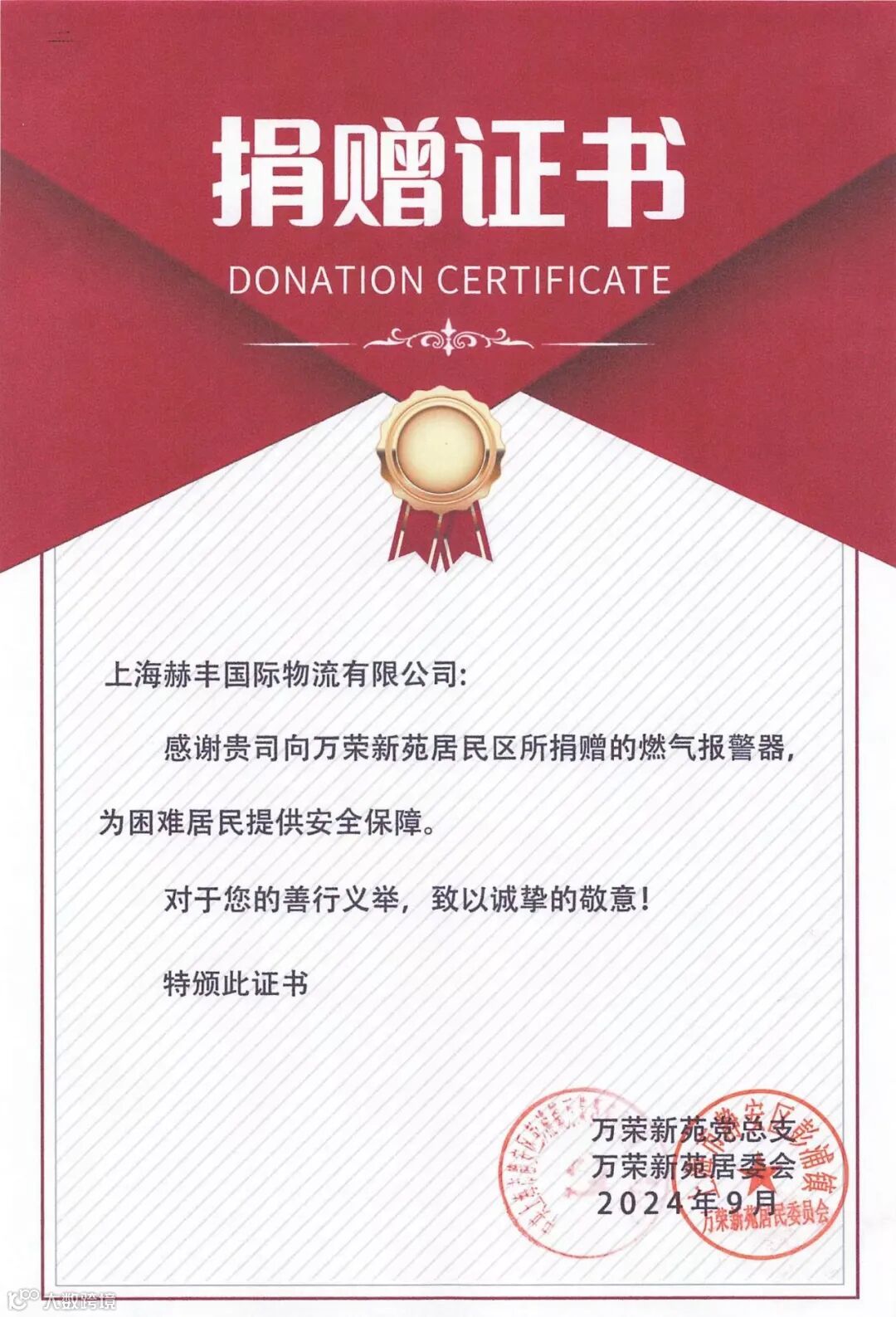 近日,赫丰国际党支部及公司管理层关注到公司所在社区老龄化严重。考虑到老年居民的燃气安全,加之即将到来的冬季是燃气泄漏事故的高发季。公司决定向社区捐赠一批价值数万元的家用燃气报警器,共计五十套,用于居民区安装。在赫丰国际党支部的积极推动下,经上海多媒体谷园区党委排查需求,最终对接彭浦镇万荣街区党总支。