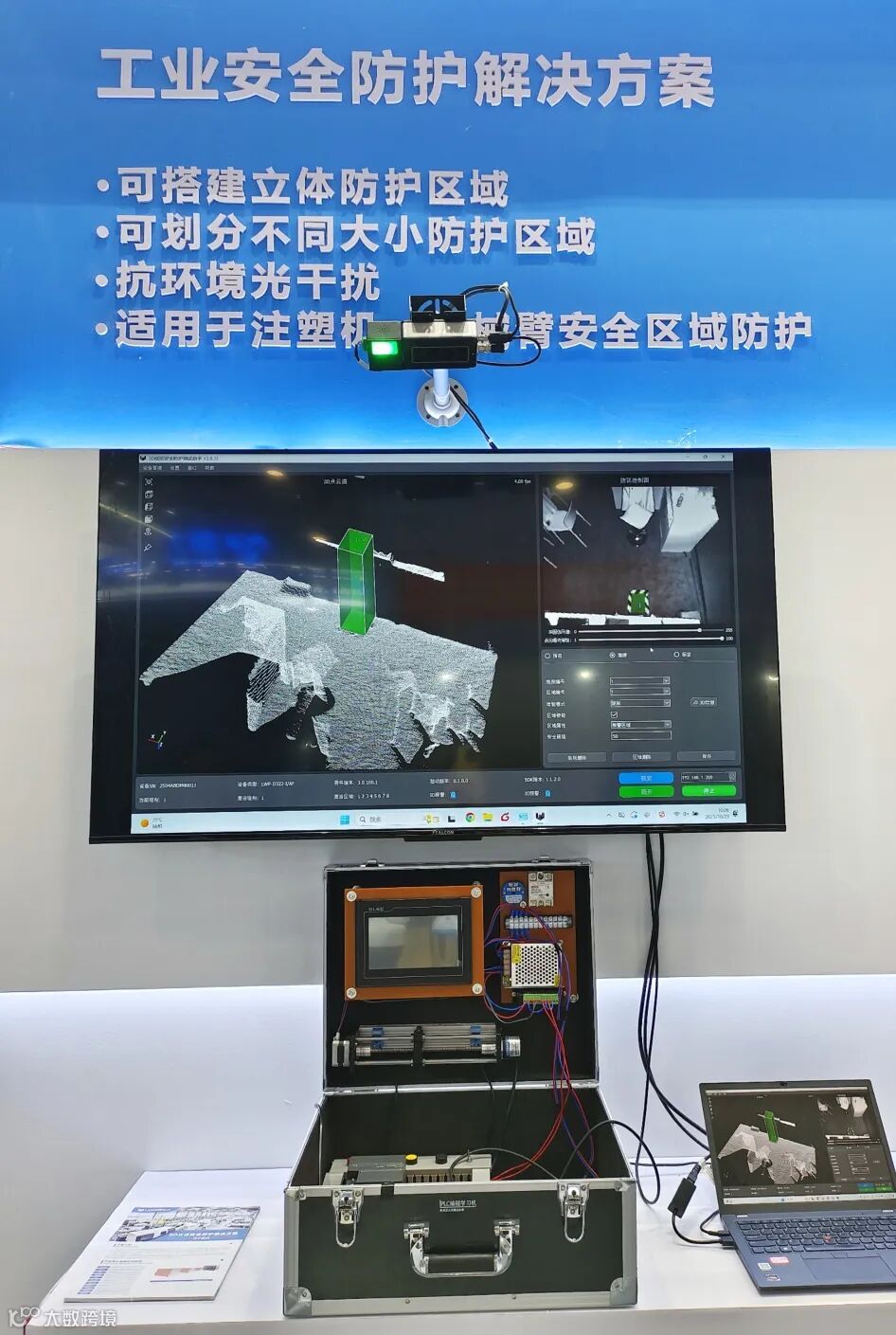 其中,洛微科技工业安全防护解决方案,依托3D ToF相机,构建起多维安全防护体系。该方案具备三大核心优势:在空间防护层面,支持自定义搭建立体防护区域,可根据机械臂作业半径、注塑机开合范围等场景需求,灵活划分不同大小的防护空间,实现从点到面的全区域覆盖;在环境适配层面,通过特殊光学滤波设计与算法优化,具备优异的抗环境光干扰能力,即使在强光直射或复杂照明环境下仍能保持稳定探测精度;在功能扩展层面,可选配声光报警器,当监测到人员或物体越界时,可瞬间触发声光警示并联动设备停机,为工业生产筑起安全防线。目前该方案已广泛应用于注塑机、机械臂等场景的安全防护场景,有效降低作业风险。