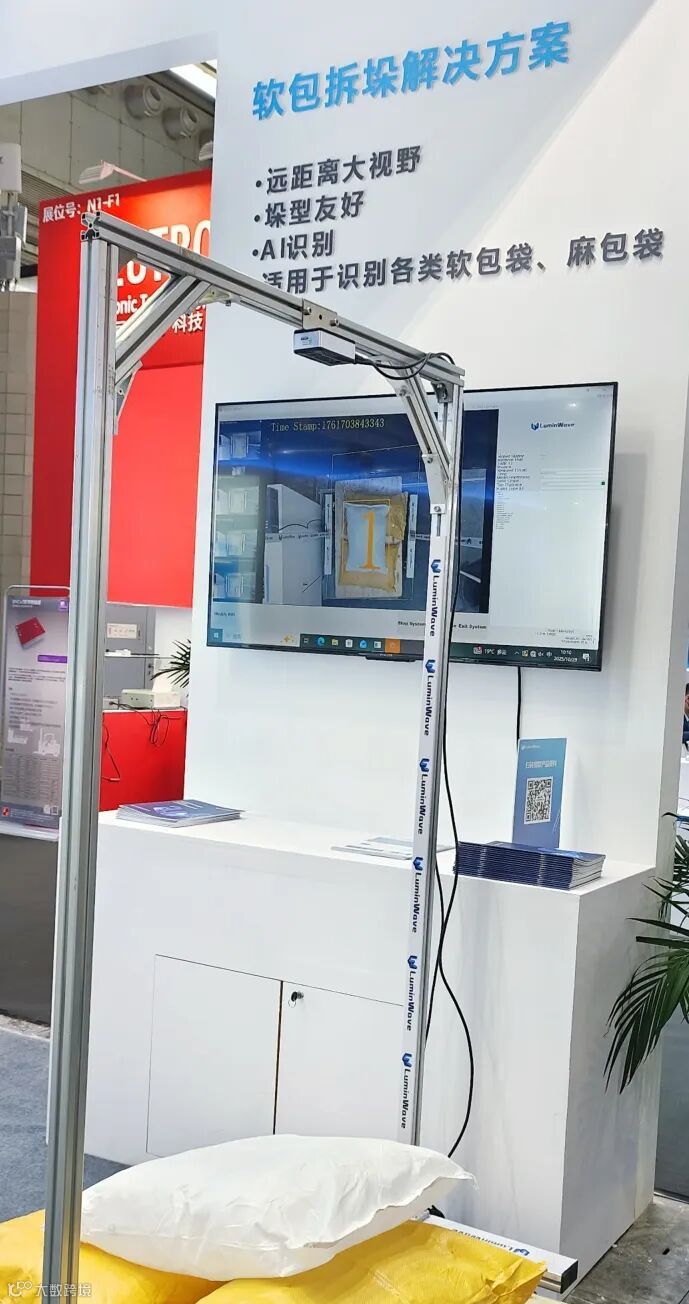 针对物流仓储领域的拆垛难题,洛微科技展示的基于3D视觉的软包拆垛解决方案展现出极强的场景适应性。该方案具备70°*50°宽广视角,可实现远距离(最远覆盖5米作业范围)下各类软包袋、麻包袋的精准识别。其核心优势在于突破传统视觉对垛型的限制,通过点云数据三维重构技术,即使面对堆叠不规则、易变形的软包货物,仍能快速完成垛型分析与抓取点定位,识别准确率达99%以上。在粮食加工、化工原料等行业的实际应用中,大幅降低人工劳动强度,显著提升物流周转效率。
