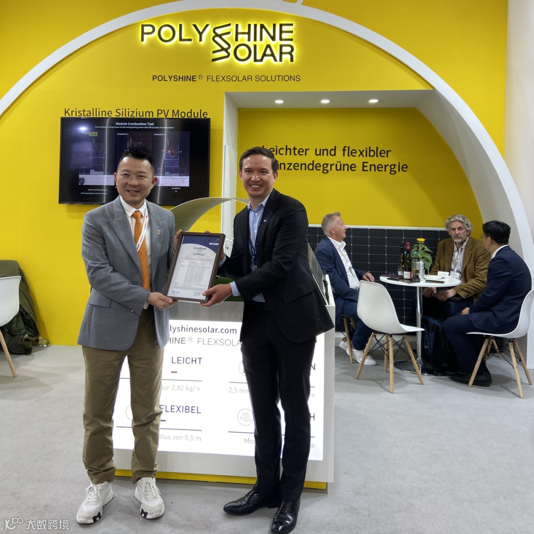 5月7日,品诚晶曜携新型轻质柔性光伏组件及明星产品阳台专用光伏组件亮相The Smarter E Europe 2025, 其主打产品新型轻质柔性组件获得了TÜV NORD 颁发的抗17级以上飓风认证证书(远超传统组件的抗12级台风要求),引发全球从业者广泛关注。