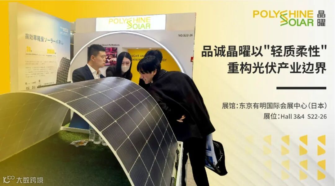 亚洲最具影响力、规模最大、专业性最强的可再生能源盛会——2025日本国际智能能源周-春(日本光伏展)(Smart Energy Week)已经进入第二天。本届展会传递出一个重要的信号,“轻量化、高效化、场景化”已经毋庸置疑的成为行业技术发展的方向和趋势,而品诚晶曜(Polyshine Solar)以“更轻、更柔、更可靠”的颠覆性技术,突破晶硅组件物理极限——重量直降70%、弯曲半径缩至0.5米、透光率媲美玻璃。这不仅是一次材料革命,更是开启"光伏全场景渗透时代"的钥匙。