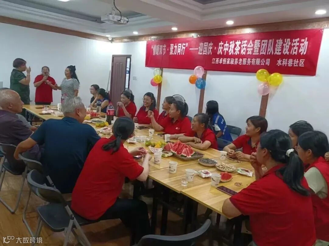 9月28日,卓恒养老联合赣县区水科巷社区举办“情暖双节•聚力同行”——迎国庆•庆中秋茶话会暨团队建设活动。