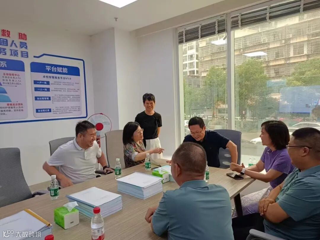 8月4日,在赣县区民政救助服务窗口向章贡区民政局、会昌县民政局介绍探视巡访及生活照料服务项目实施情况。