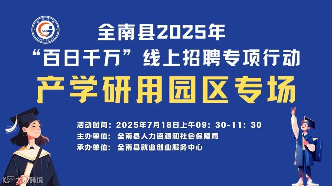 承办全南县2025年“百日千万”线上招聘专项行动产学研用园区专场招聘会。