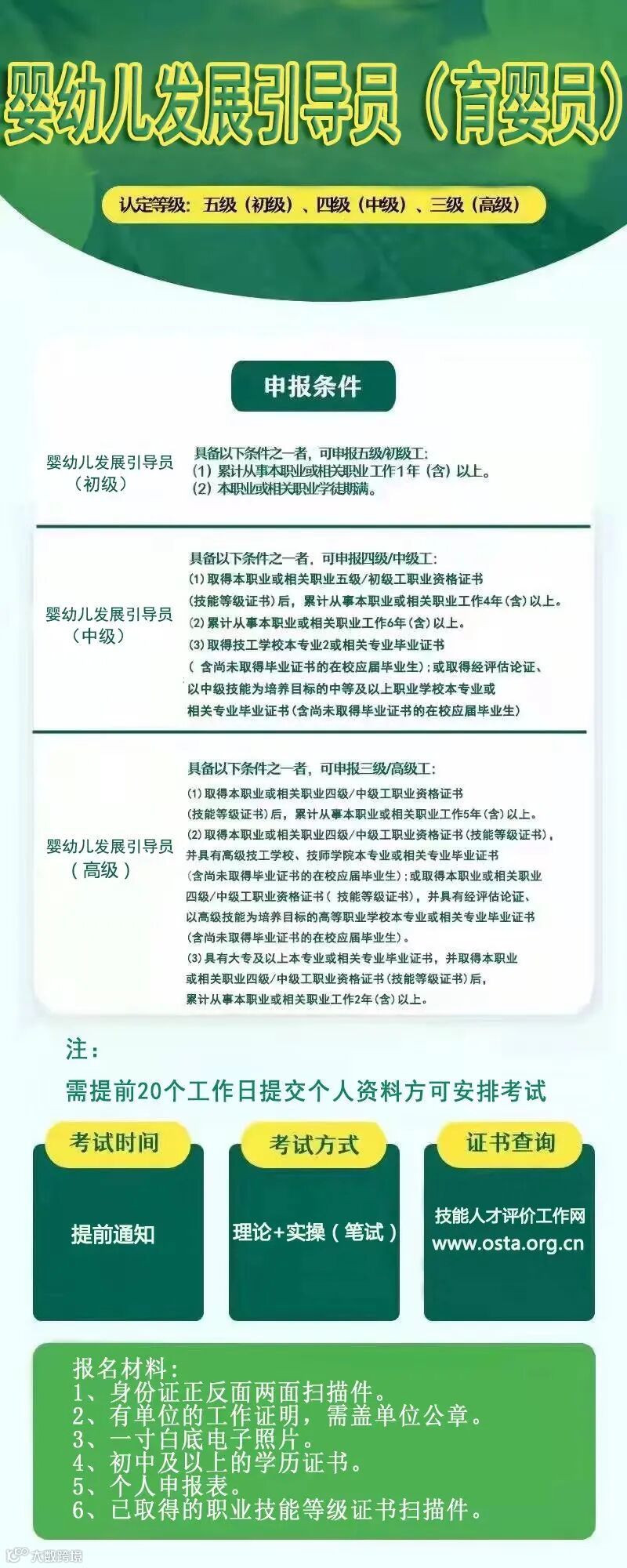 婴幼儿发展引导员(育婴员)考试(社评5-3)。