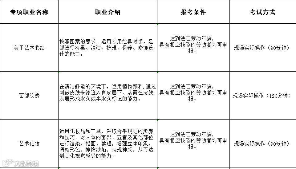美甲艺术彩绘、面部纹绣、艺术化妆等专项职业能力考核项目一览表
