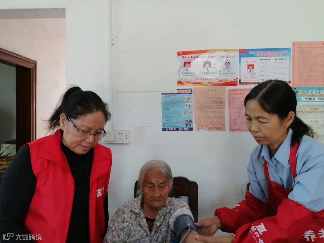 洗浴结束后,助浴员再次给老人进行血压等常规检测。