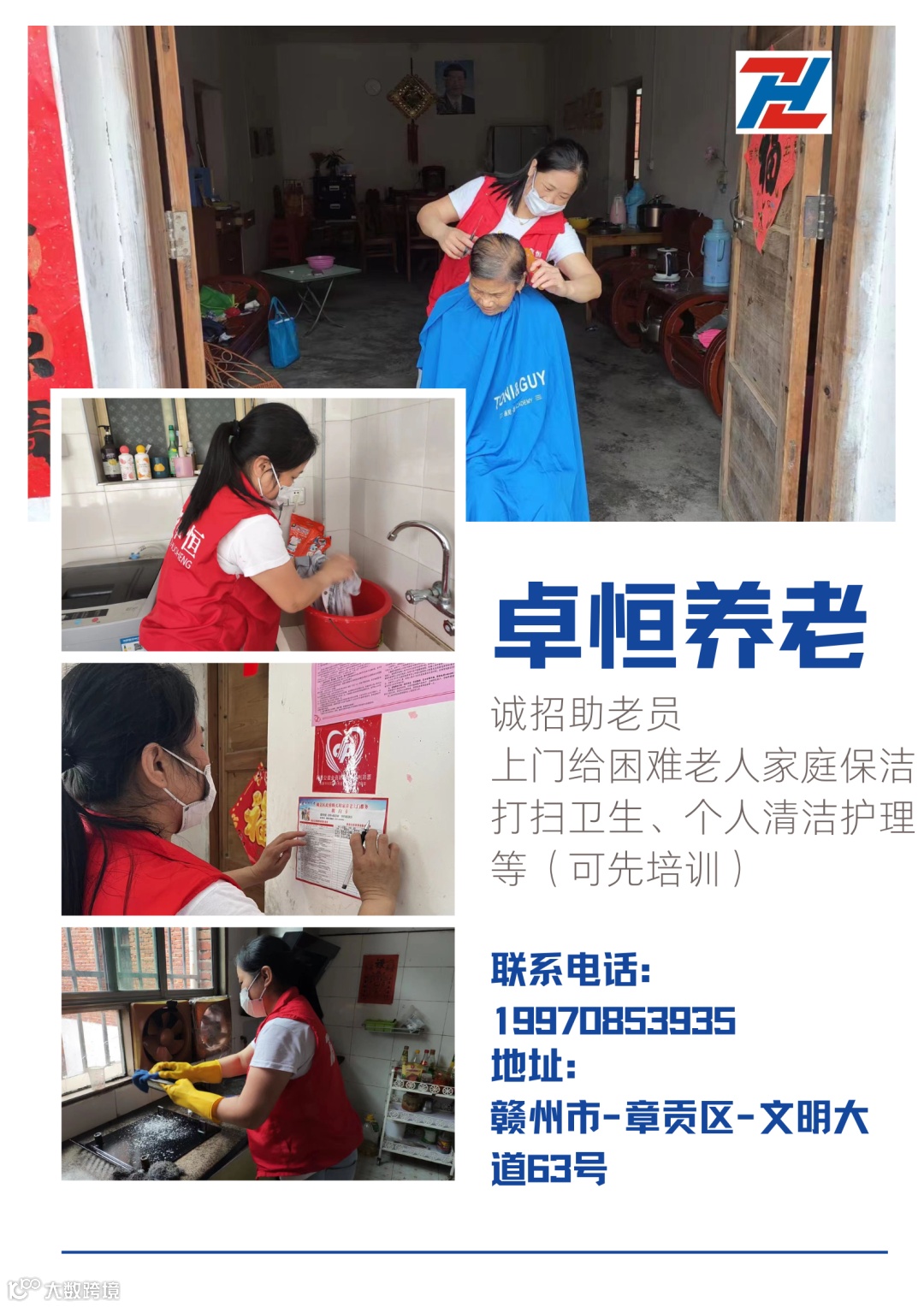卓恒养老助老员为赣县困难老人提供居家养老服务。