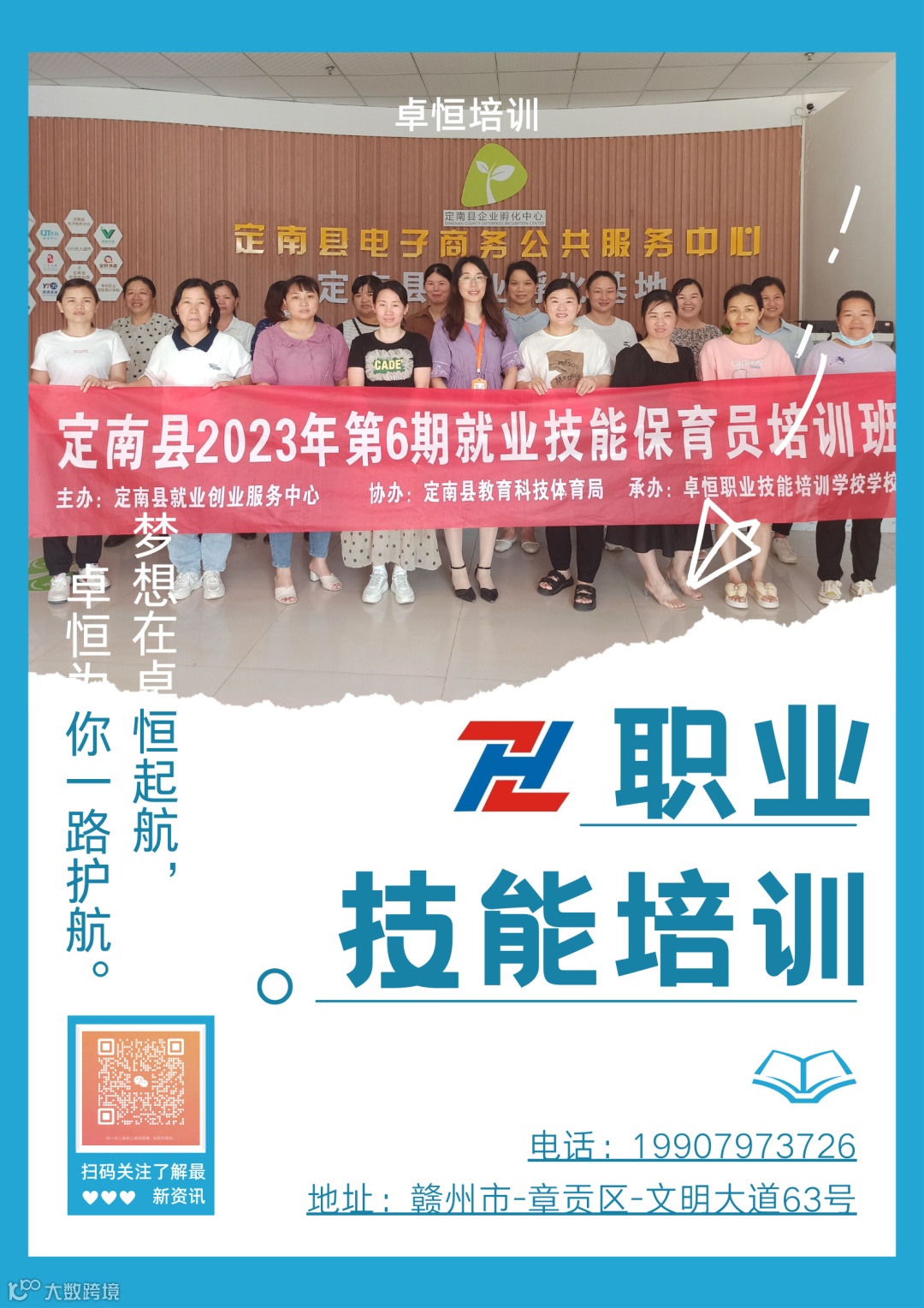 2023年全南县龙下乡第1期脱贫劳动力农业技术员培训班、2023年全南县南迳镇第1期脱贫劳动力养老护理员培训班、2023年大余县青龙养老护理班、2023年大余县第二期电子商务培训班、2023年大余县池江电子商务培训班、2023年上犹县第8期电子商务培训班、2023年定南县第10期就业技能中式面点师培训班顺利开班。
