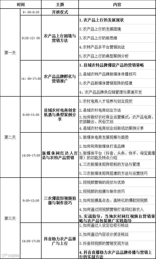 “乡村振兴电商带头人培训计划”具有线上与线下相结合、培训与业务相衔接、入门与进阶分层培训、根据需求“菜单式”选课、近百名公益讲师参与、组建专家后援顾问团“定向”把脉问诊等6大特点,且具有很强的公益属性,免费提供课程和师资。