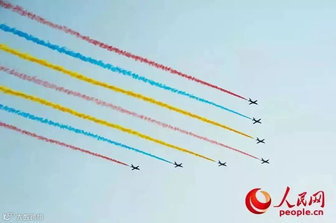 一抹抹航迹,如彩练当空,五彩绚烂;一架架战鹰,如箭矢疾驰,直刺苍穹。