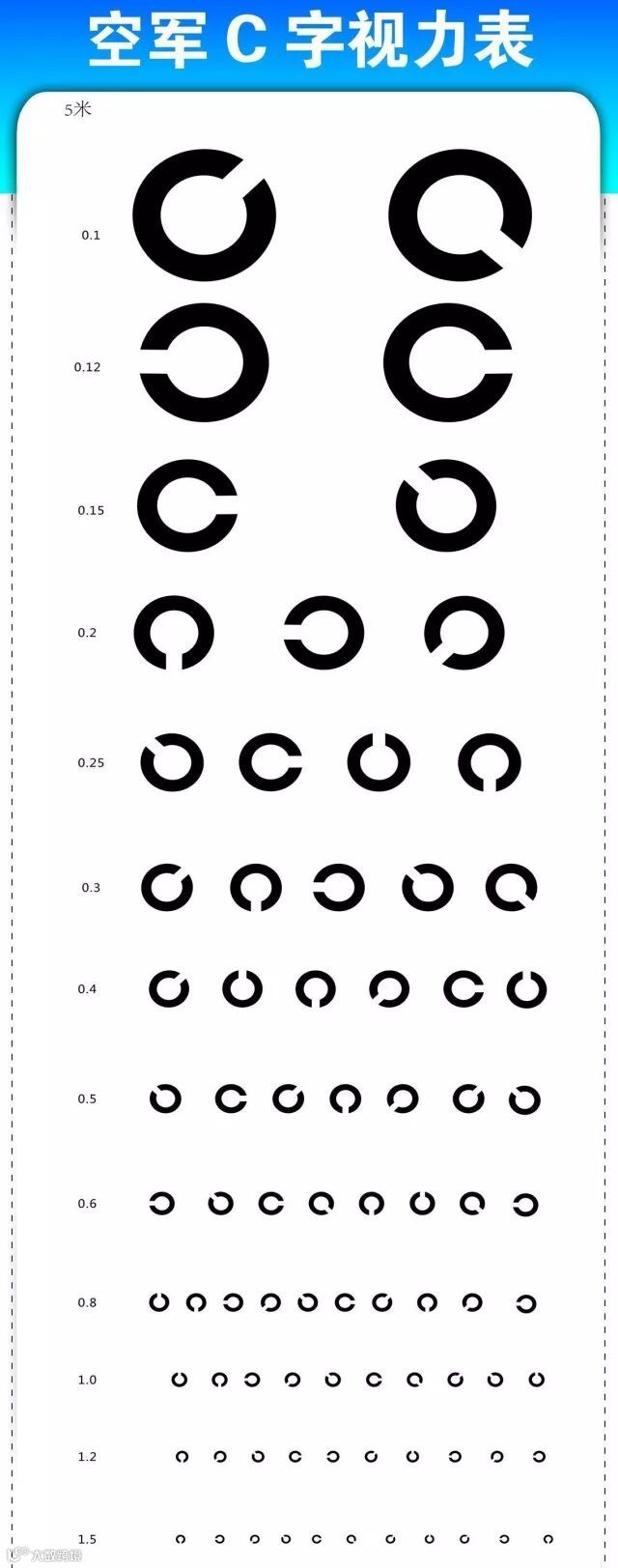 我们都知道民航飞行员对视力要求是极其严格的。站在5米之外,左边这种普通视力表我们可能都看不清,但是飞行员看的这种是C字形的,要指出开口方向…